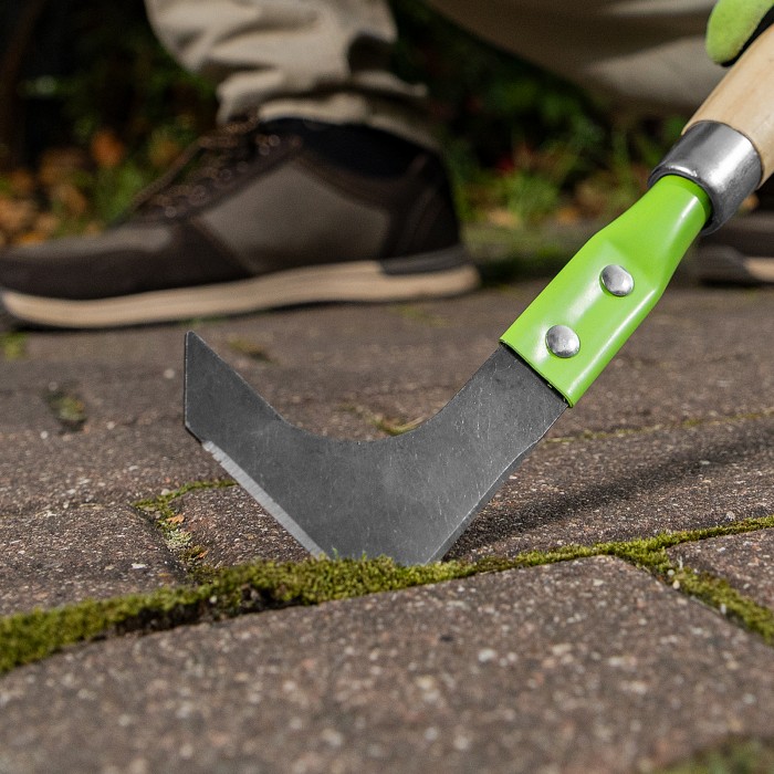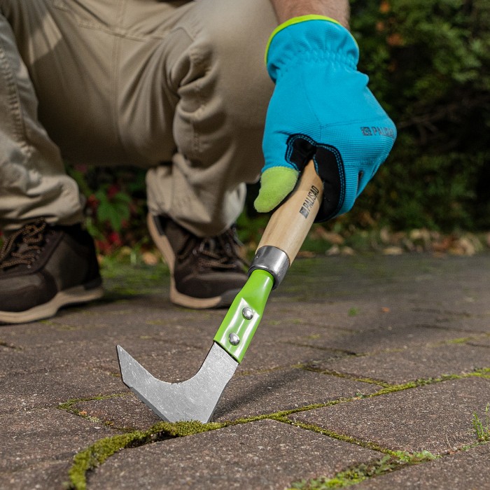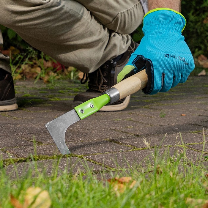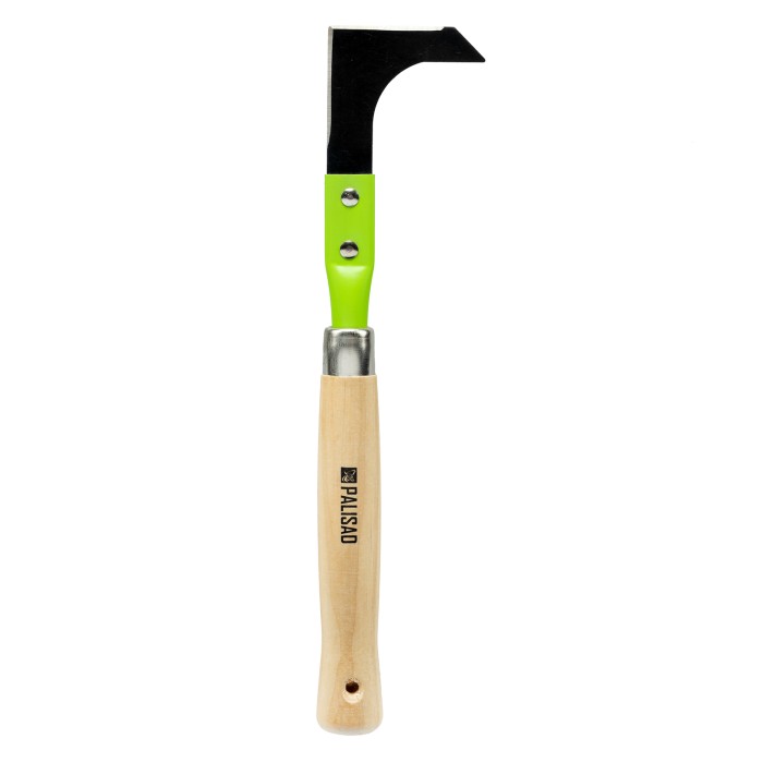 Универсальный стальной нож Palisad Classic 62324 длиной 350 мм, с рабочей частью шириной 70 мм и деревянной рукояткой, используется для подрезания корней сорняков и очистки межплиточного пространства. Инструмент успешно ...
