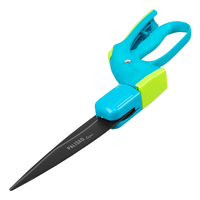 Ножницы газонные Palisad LUXE 608635 длиной 365 мм, с пластиковыми обрезиненными рукоятками, — инструмент для подстригания травы вдоль кромок газонов, дорожек, бордюров, ограждений, а также возле кустов. Поворотные на 180° лезвия облегчают работу в труднодоступных местах. Гарда на нижней рукоятке защищает пальцы от царапин, проколов и ссадин. Механизм автооткрывания препятствует заеданию лезвий при стрижке жесткой травы. Ножницы помогут привести в порядок дачный участок или придомовую территорию.ПреимуществаДолговечность — корпус изготовлен из прочного полипропилена, устойчивого к УФ-излучению, что увеличивает срок службы инструмента.Высокая прочность — лезвия изготовлены из высококачественной японской стали SK-5, легированной кремнием и кобальтом.Устойчивость к износу — режущие кромки закалены до твердости 53-58 HRC и остро заточены.Надежные лезвия — верхнее имеет тефлоновое покрытие, предотвращающее образование коррозии и облегчающее рез, нижнее хромировано для защиты от ржавчины.Повышенное качество реза — регулировочный винт позволяет настроить плотность смыкания лезвий.Продуманная конструкция — специальный колпачок защищает шарнир от попадания в механизм пыли и частиц срезанной травы.Безопасность — специальный фиксатор надежно удерживает лезвия в сомкнутом положении при хранении и транспортировке инструмента.Комфортная работа — рукоятки покрыты нескользящей термопластичной резиной, что обеспечивает надежный хват.