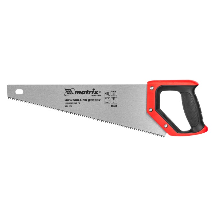 Ножовка по дереву, 400 мм, зуб 2D, каленый крупный зуб 5-6 TPI, двухкомпонентная рукоятка Matrix