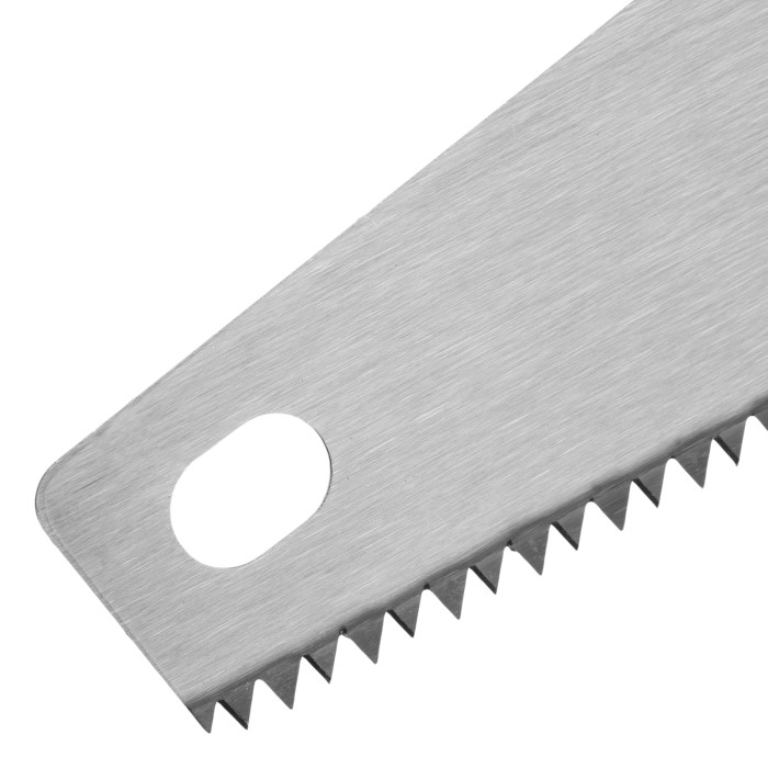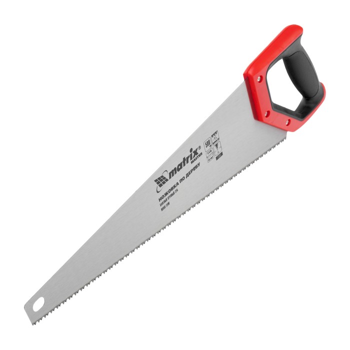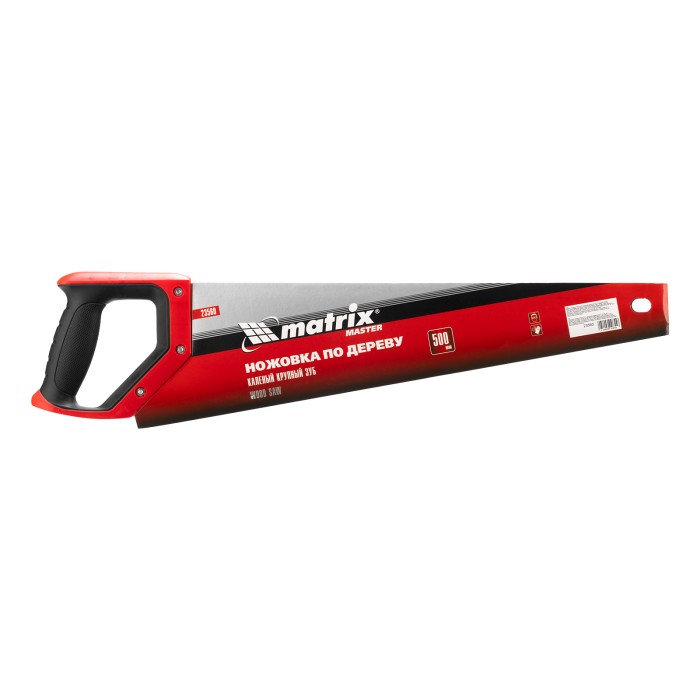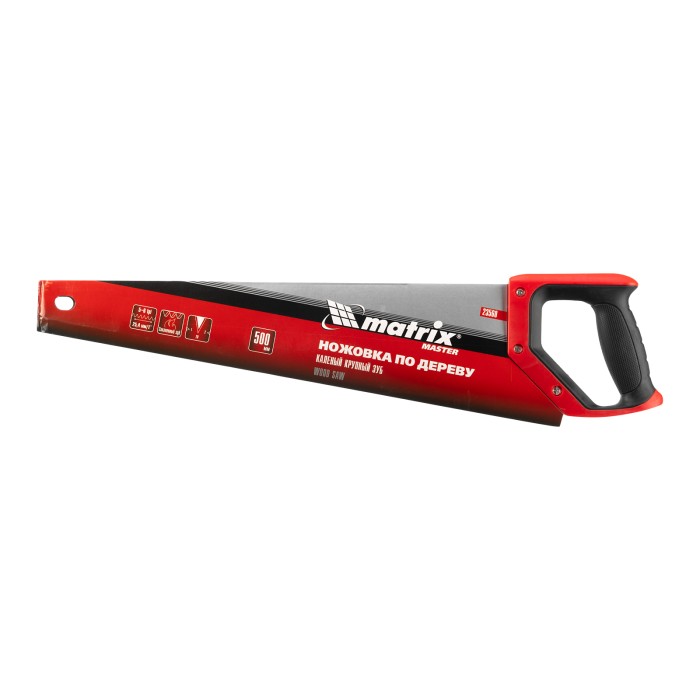 Ножовка по дереву Matrix 23560 с полотном длиной 500 мм, с крупными калеными зубьями с шагом 5-6 TPI, волновой вырубкой и 2D-заточкой, с двухкомпонентной рукояткой, используется для быстрой продольной или поперечной распиловки древесины. Высокая скорость работы достигается благодаря крупным зубьям с волновой заточкой и универсальным шагом 4-5 мм. Двухгранная заточка зубьев дает возможность пилить в направлении как от себя, так и на себя, а также перетачивать режущую кромку при необходимости. Ножовка подходит для выполнения плотницких и хозяйственных работ.ПреимуществаПрочность и долговечность — полотно изготовлено из пружинной стали 65Mn и покрыто лаком для защиты от коррозии.Высокий ресурс — благодаря закаленным зубьям рабочая кромка долго сохраняет режущие свойства.Комфортная работа — эргономичная рукоятка с рельефной поверхностью не выскальзывает из руки.Подтвержденное качество — ножовка произведена под строгим технологическим контролем.