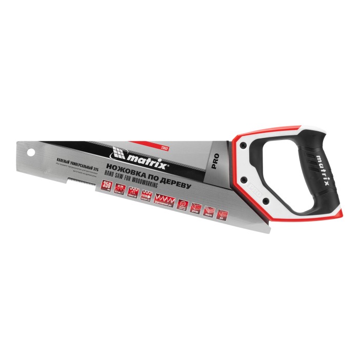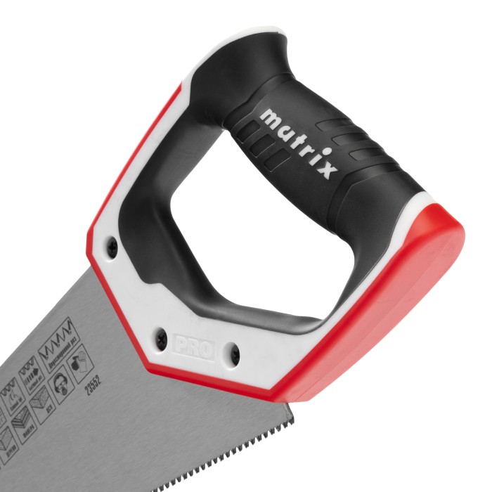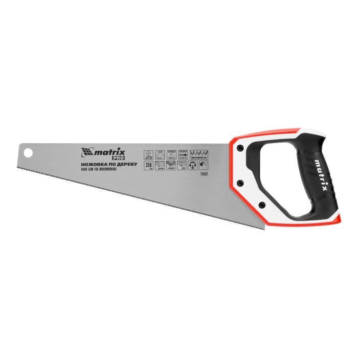 Ножовка по дереву Matrix PRO 23552 с полотном длиной 350 мм, калеными зубьями с шагом 14 TPI и 3D-заточкой, с трехкомпонентной рукояткой, предназначена для точных пильных работ с заготовками из древесины, фанеры и ДСП. П...