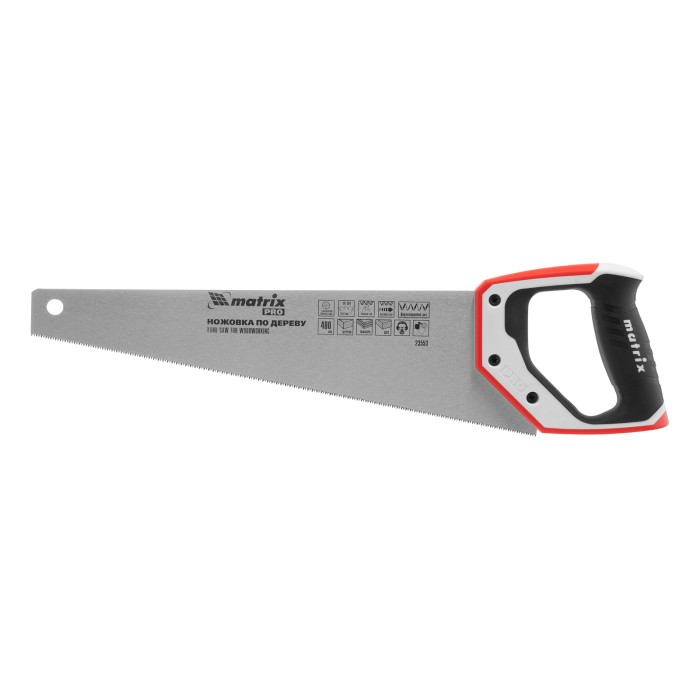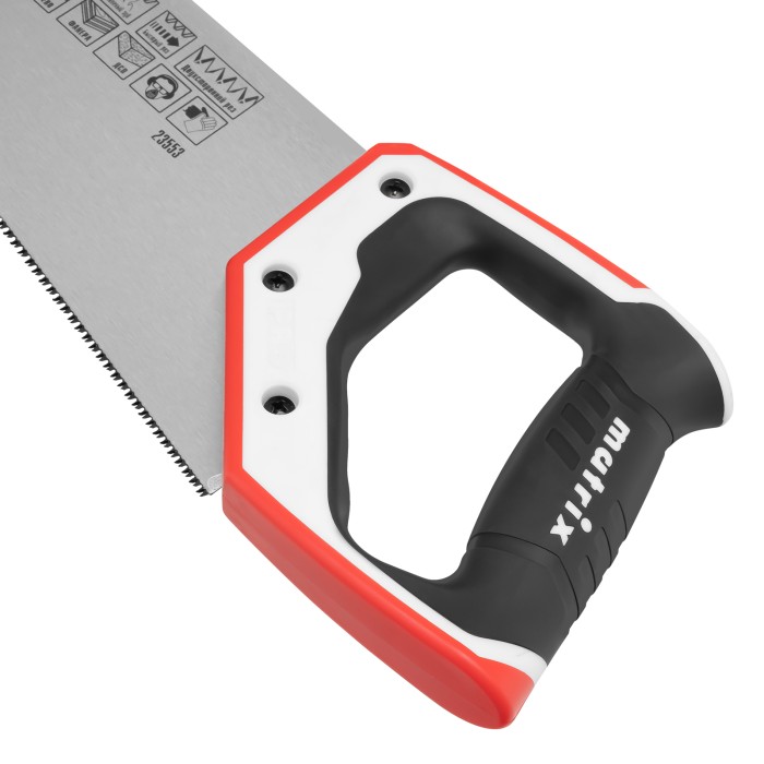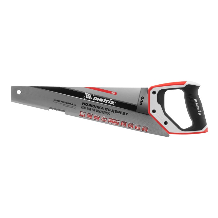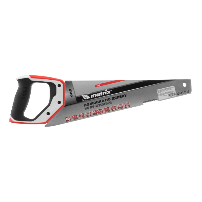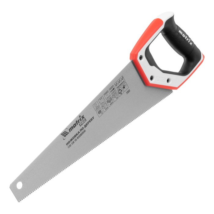 Ножовка по дереву Matrix PRO 23553 с полотном длиной 400 мм, калеными зубьями с шагом 14 TPI и 3D-заточкой, с трехкомпонентной рукояткой, предназначена для точных пильных работ с заготовками из древесины, фанеры и ДСП. П...