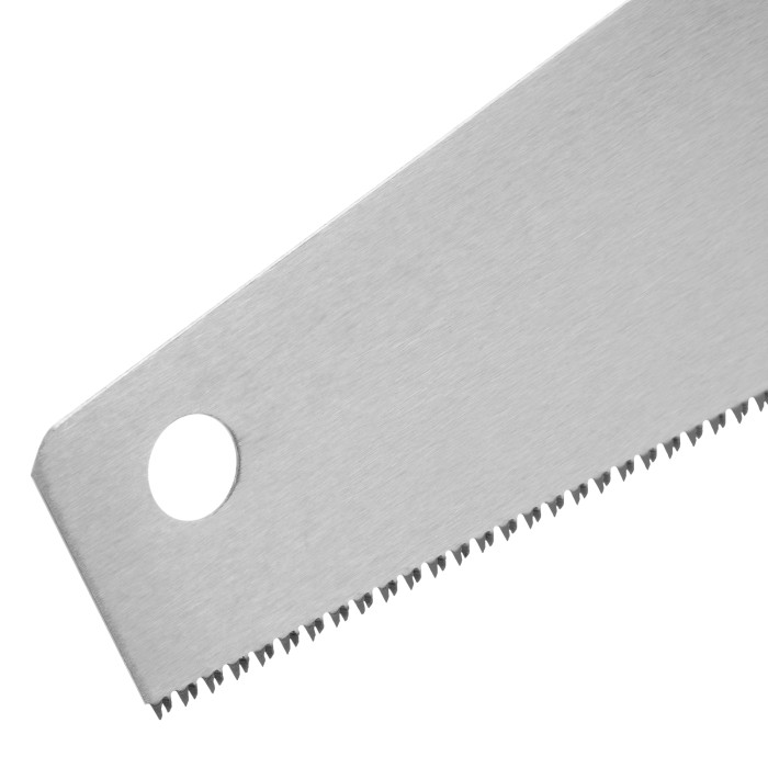 Ножовка по дереву Matrix PRO 23553 с полотном длиной 400 мм, калеными зубьями с шагом 14 TPI и 3D-заточкой, с трехкомпонентной рукояткой, предназначена для точных пильных работ с заготовками из древесины, фанеры и ДСП. Подходит для продольного и поперечного пиления. Шаг зубьев составляет 14 TPI, что обеспечивает точность реза. 3D-заточка зубьев увеличивает производительность ножовки. Инструмент будет полезен в столярной мастерской, а также пригодится в быту. ПреимуществаНадежность — полотно изготовлено из пружинной стали 65Mn и зафиксировано в рукоятке 3 винтами.Высокий ресурс — зубья, закаленные до твердости 46-52 HRC, долго держат заточку.Защита от разрушения — лаковое покрытие предохраняет полотно от коррозии.Комфортная работа без ощущения усталости — трехкомпонентная обрезиненная рукоятка удобно ложится в руку и не выскальзывает из ладони.Гарантированное качество — ножовка изготовлена на японском оборудовании с соблюдением всех технологических норм.