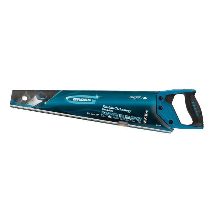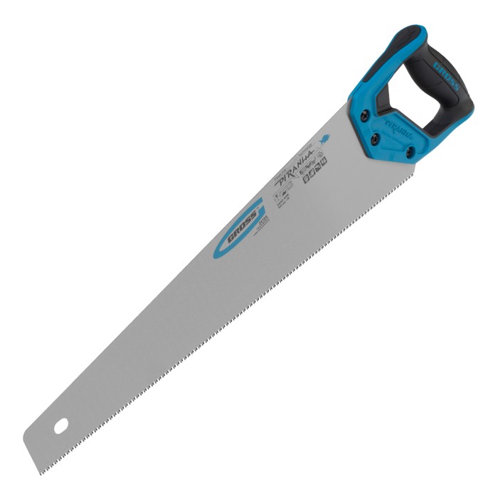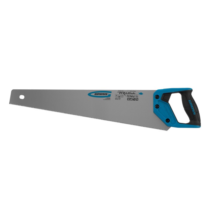 Ножовка по дереву Gross PIRANHA 24104 с полотном длиной 500 мм, калеными зубьями с 3D-заточкой и шагом 11-12 TPI, с 2-компонентной рукояткой, предназначена для распиловки заготовок из древесины, ДСП, ДВП, МДФ и ламината,...