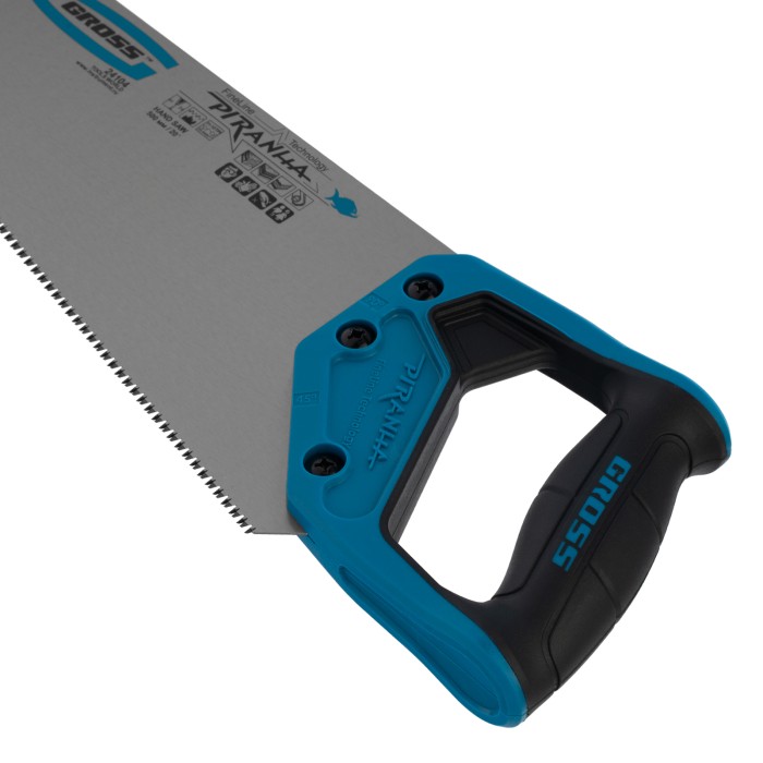 Ножовка по дереву "Piranha", 500 мм, 11-12 TPI, зуб-3D, каленый зуб, двухкомпонентная рукоятка Gross