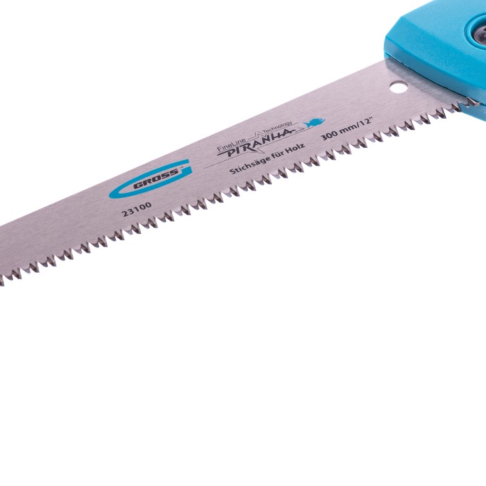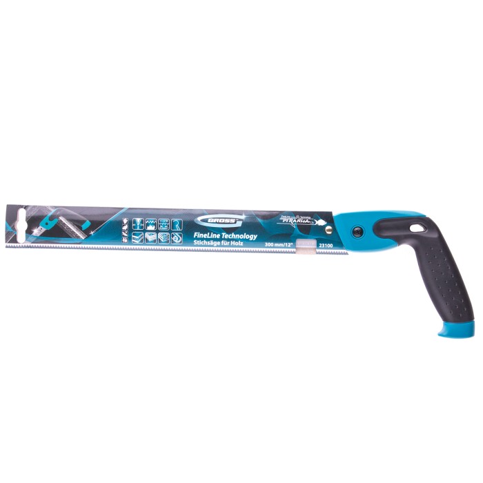 Выкружная ножовка по дереву Gross PIRANHA 23100, 300 мм / 12 дюймов, 11-12 TPI, с каленым зубом 3D и двухкомпонентной рукояткой, предназначена для криволинейного реза листовых заготовок из фанеры, ДСП, ДВП, ламината, МДФ...
