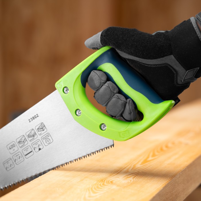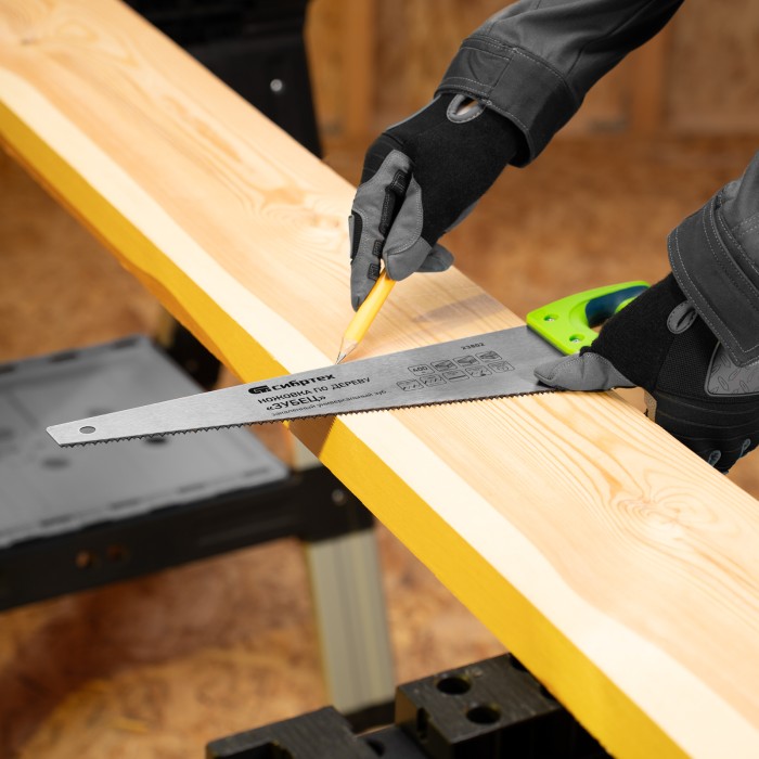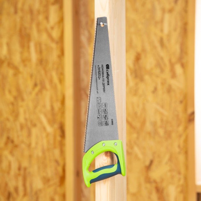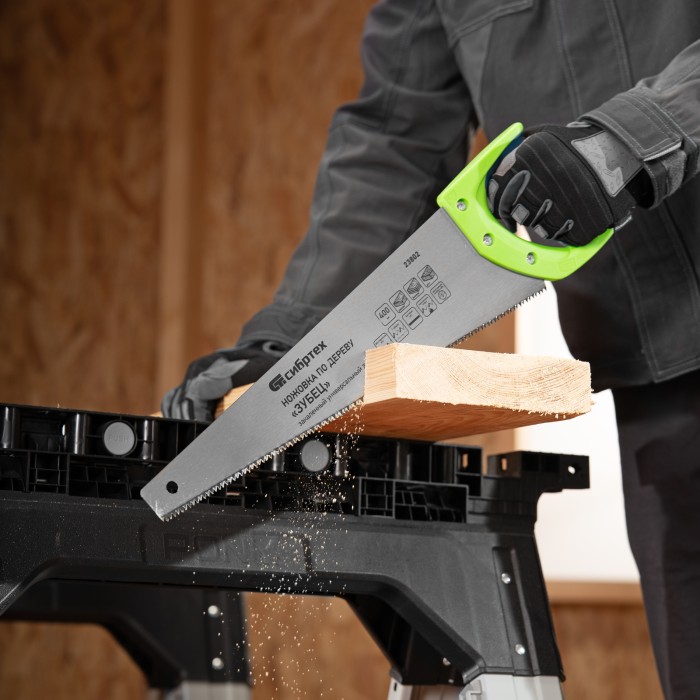Ножовка по дереву "Зубец", 400 мм, 7-8 TPI, каленый зуб 2D, двухкомпонентная рукоятка Сибртех