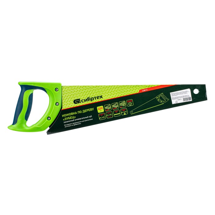 Ножовка Сибртех по дереву «Зубец» 23813 с полотном длиной 400 мм, с калеными зубьями с 3D-заточкой и шагом 7-8 TPI, с двухкомпонентной рукояткой, предназначена для продольной и поперечной распиловки древесины, фанеры и Д...
