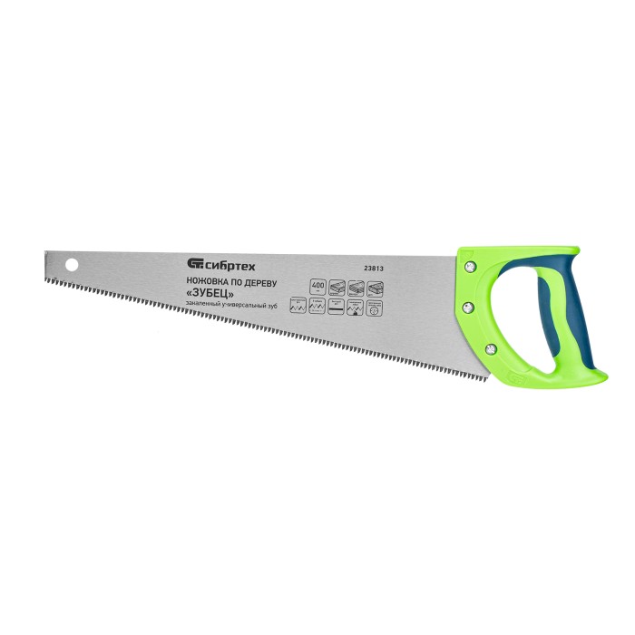 Ножовка по дереву "Зубец", 400 мм, 7-8 TPI, каленый зуб 3D, двухкомпонентная рукоятка Сибртех