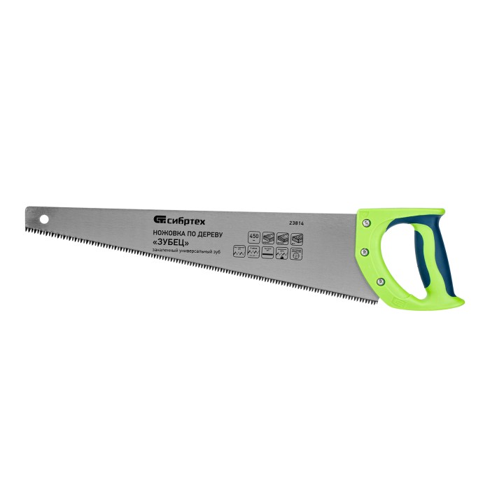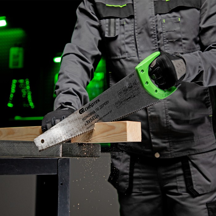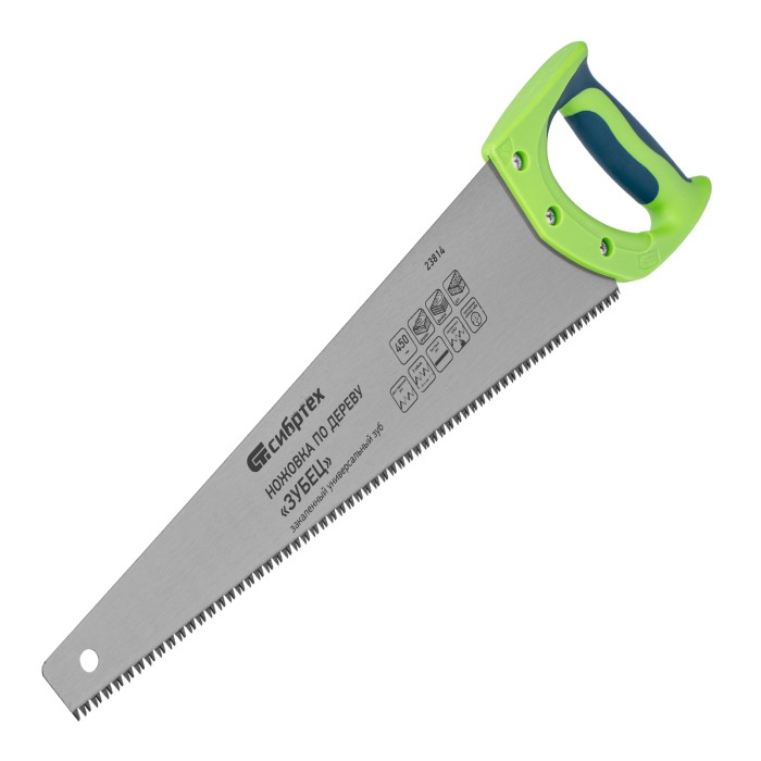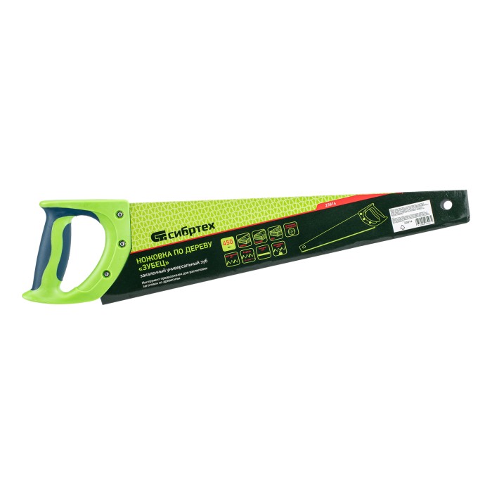 Ножовка по дереву "Зубец", 450 мм, 7-8 TPI, каленый зуб 3D, двухкомпонентная рукоятка Сибртех