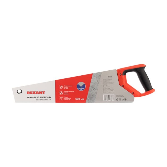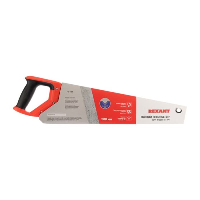 Ножовка по пенобетону 500мм, защитное покрытие, твердосплавные напайки на зубья, двухкомпонентная рукоятка REXANT