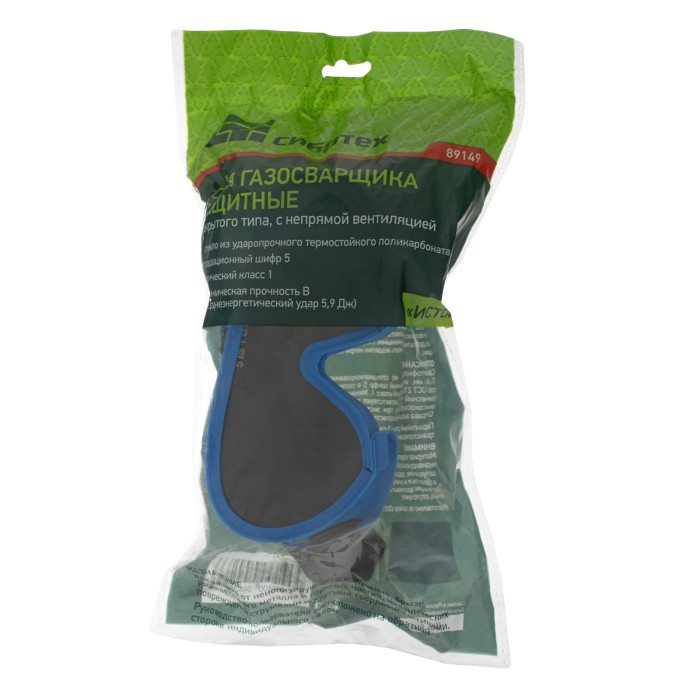 Защитные очки газосварщика Сибртех 89149 закрытого типа, с непрямой вентиляцией и линзами из поликарбоната, предотвращают механические травмы роговицы, а также предохраняют сетчатку от повреждения в результате воздействия теплового и светового излучения. Имеют цельную конструкцию и анатомическую форму, поэтому плотно прилегают к лицу и полностью закрывают глаза. Очки требуют строгого соблюдения условий эксплуатации.ПреимуществаНадежная защита от искр и частиц металла — линзы изготовлены из ударопрочного поликарбоната.Защита от запотевания — производитель предусмотрел вентиляционные клапаны оригинальной конструкции.Возможность ношения поверх корригирующих очков — газосварочные очки подходят людям с нарушениями зрения.Удобная посадка — изделие плотно фиксируется на голове при помощи регулируемой наголовной ленты.Безопасность — очки изготовлены из безопасных материалов, работа в них не влечет негативных реакций организма (при отсутствии индивидуальной чувствительности).Возможность длительного ношения — очкам присвоен оптический класс 1.Подтвержденное качество — изделие соответствует требованиям технического регламента ТС 019/2011 «О безопасности средств индивидуальной защиты».