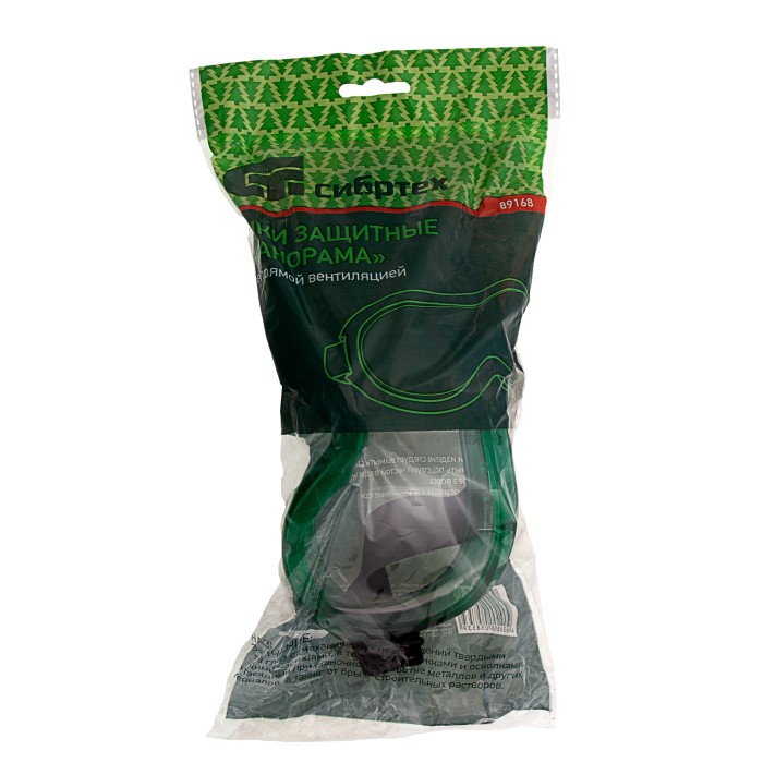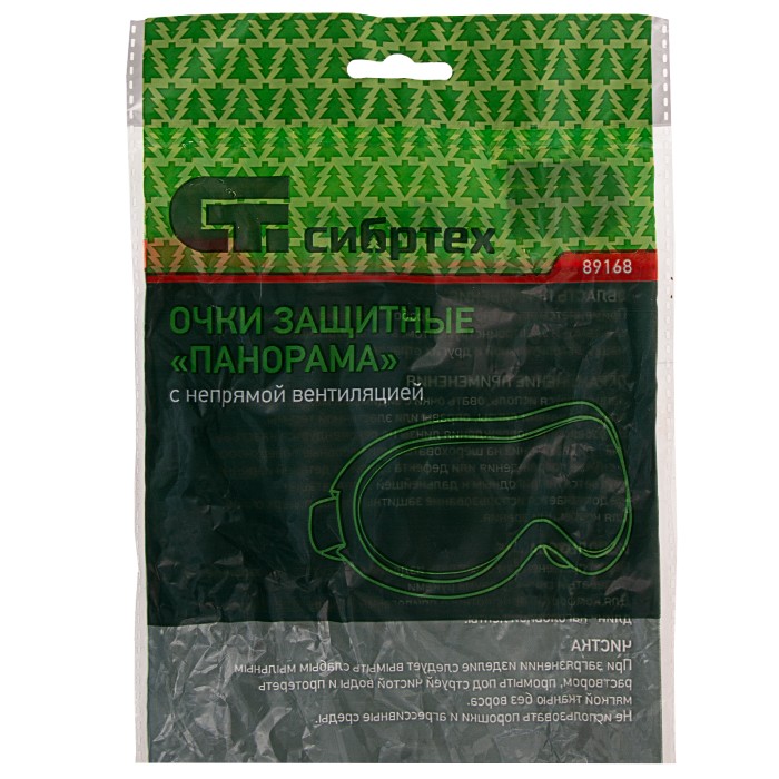 Защитные очки Сибртех «Панорама» 89168 с непрямой вентиляцией предохраняют органы зрения от попадания пыли, металлической или деревянной стружки, брызг строительных растворов. Благодаря клапанам, образующим систему непрямой вентиляции, линза не запотевает. Уплотнитель имеет анатомическую форму, поэтому очки плотно прилегают к лицу. Рекомендуется использовать их в слесарной и столярной мастерской, а также в гараже или на даче.ПреимуществаНадежная защита — линза изготовлена из ударопрочного поликарбоната, негорючий цельный корпус закрывает глаза со всех сторон.Комфортное проведение длительных работ — увеличенная линза обеспечивает широкий обзор, очки имеют оптический класс 1 и не искажают предметы.Возможность использования людьми с нарушениями зрения — защитные очки можно надевать вместе с корригирующими очками.Эргономичность — удобная наголовная лента регулируется по длине.Гипоаллергенность — очки изготовлены из безвредных материалов, характеристики изделия соответствуют требованиям ТР ТС 019/2011 «О безопасности средств индивидуальной защиты».