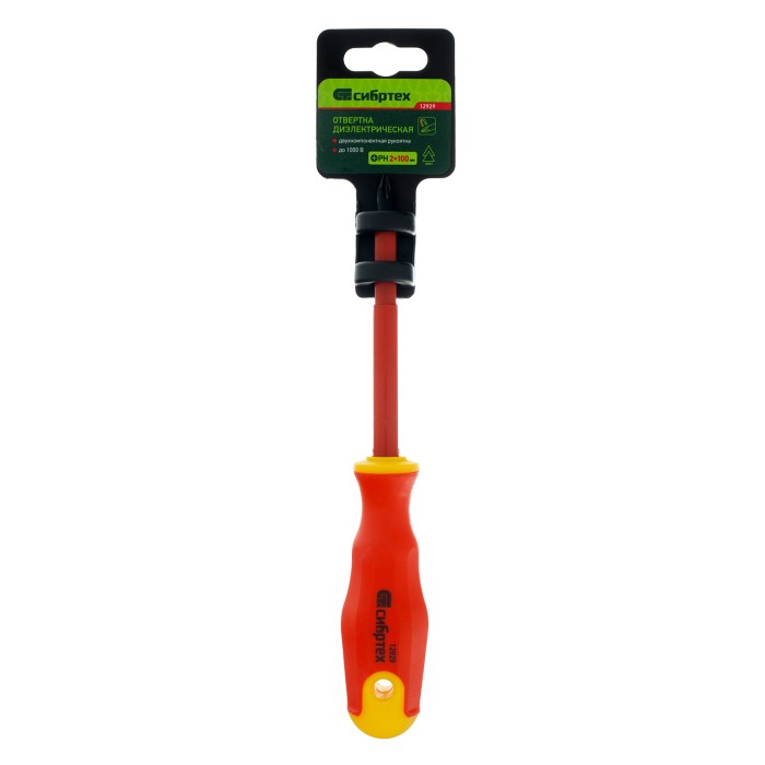 Отвертка диэлектрическая PH2 х 100 мм, CrV, до 1000 В, двухкомпонентная рукоятка Сибртех