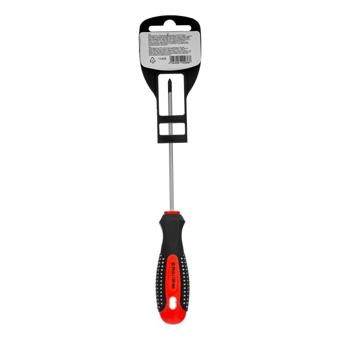 Отвертка Matrix Fusion 11435, PH0 х 100 мм, из стали CrV, с 3-х компонентной рукояткой «anti slip», предназначена для работ с резьбовым крепежом, имеющим крестообразный шлиц Phillips. Профессиональная отвертка пригодится при выполнении строительных, монтажных и ремонтных работ, а также при сборке мебели и ремонте автомобиля. Длина стержня 100 мм позволяет работать с крепежом в углублениях.ПреимуществаСтержень и жало выполнены из износостойкой легированной стали CrV твердостью 50-52 HRC, что обеспечивает долгий срок службы отвертки.Намагниченный наконечник позволяет зафиксировать крепеж и направлять отвертку одной рукой, а другой придерживать закрепляемую деталь.Фосфатированный шлиц обеспечивает улучшенное сцепление с крепежом для удобства работы.Трехкомпонентная рукоятка «anti slip» с подпальцевыми выемками и специальными секциями обеспечивает комфортный и надежный хват без проскальзывания.