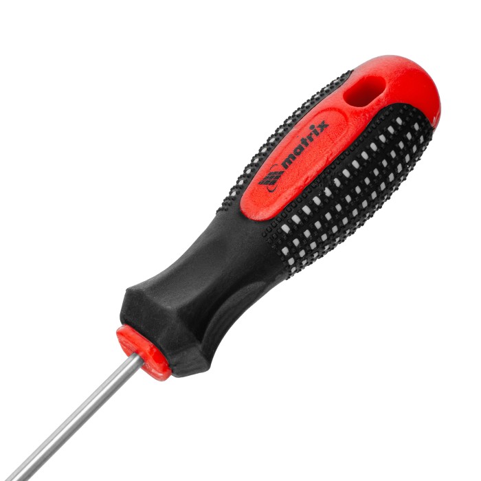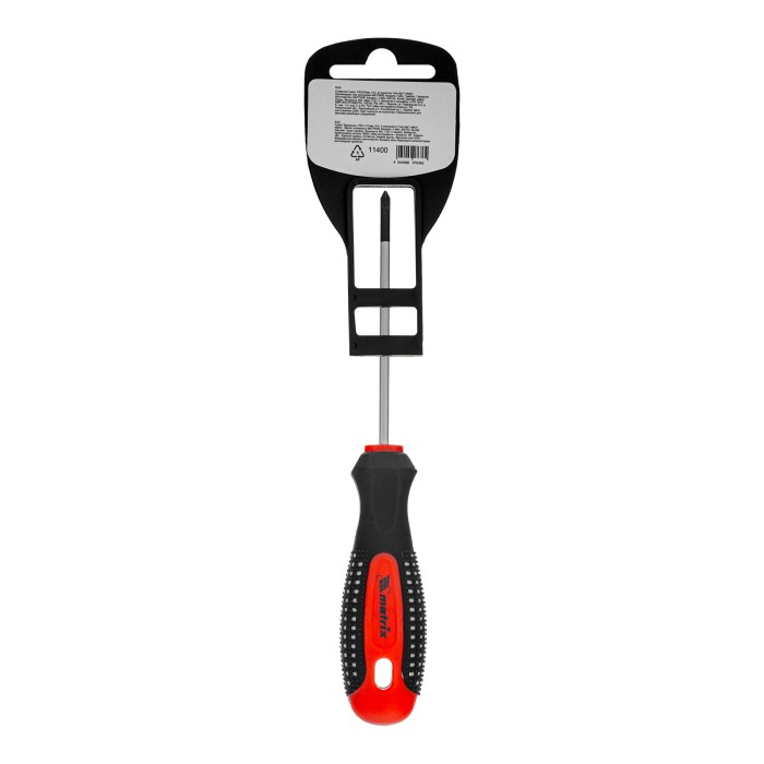 Отвертка Matrix Fusion 11400, PZ0 x 75 мм, CrV, с 3-х компонентной рукояткой «anti slip», используется для монтажа и демонтажа крепежных элементов калибра Pozidriv 0 с дополнительными ребрами на шлице. Она пригодится профессиональным мастерам при осуществлении строительных и монтажных работ. Длина стержня 75 мм оптимально подходит для работ на поверхностях и в углублениях.ПреимуществаСтержень и жало выполнены из износостойкой легированной стали CrV твердостью 50-52 HRC, что обеспечивает долгий срок службы отвертки.Намагниченный наконечник позволяет зафиксировать крепеж и направлять отвертку одной рукой, а другой придерживать закрепляемую деталь.Фосфатированный шлиц обеспечивает улучшенное сцепление с крепежом для удобства работы.Трехкомпонентная рукоятка «anti slip» с подпальцевыми выемками и специальными секциями обеспечивает комфортный и надежный хват без проскальзывания.
