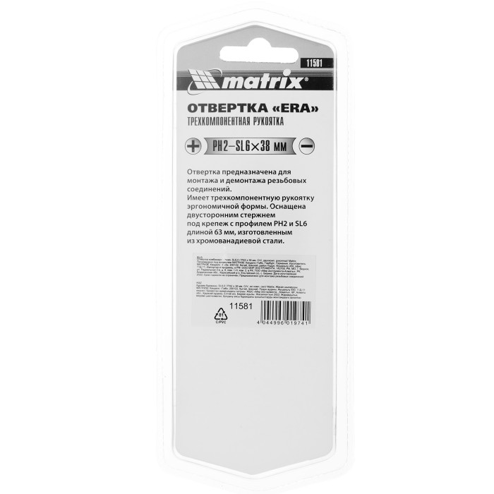 Отвертка комбинированная, SL6/PH2 х 38 мм, CrV, двухкомпонентная рукоятка Matrix
