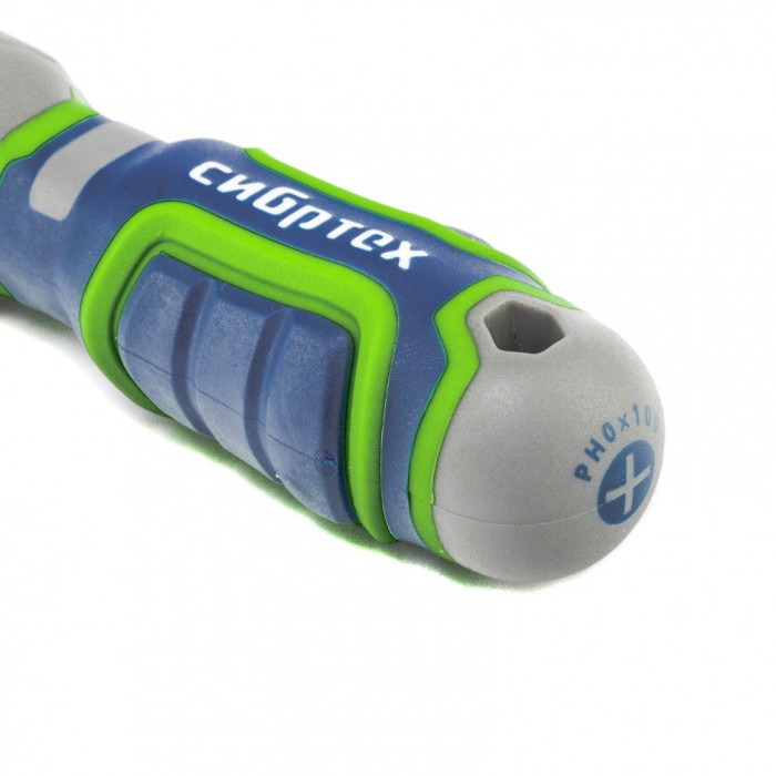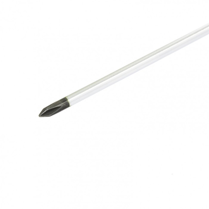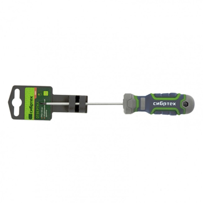 Отвертка Сибртех 12271, PH0 х 100 мм, из стали CrV, с 4-х компонентной рукояткой, имеет крестовой шлиц Philips, поэтому подходит для монтажа и извлечения крепежа соответствующего типа. Она рассчитана как на бытовые работы, так и на профессиональное применение: сборку мебели, монтаж различных конструкций и т.д. Стержень длиной 100 мм позволяет работать в углублениях и на поверхностях.ПреимуществаОтвертка обладает высоким ресурсом и прочностью, т.к. стержень изготовлен из износостойкой хромованадиевой стали, шлиц дополнительно закален до твердости 50-55 HRC.За счет намагниченного жала отвертки крепеж не нужно удерживать рукой.Рабочая часть отвертки фосфатирована, что обеспечивает лучшее сцепление с головкой крепежа.Благодаря обозначению типа шлица и длины стержня на затыльнике рукояти отвертку легко найти среди других инструментов.Четырехкомпонентная рукоятка имеет сложную рельефную форму, за счет чего она надежно лежит в руке, не проскальзывает и снижает нагрузку на запястье.