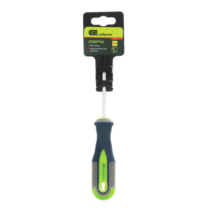 Отвертка, PH1 х 75 мм, CrV, трехкомпонентная рукоятка Сибртех