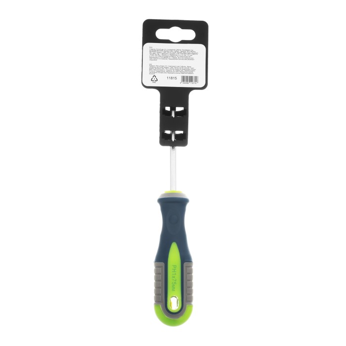 Отвертка Сибртех 11815, PH1 х 75 мм, из стали CrV, с 3-х компонентной рукояткой, пригодится частным мастерам для монтажа/демонтажа крепежных элементов типоразмера PH1. Она поможет произвести ремонтные и монтажные работы дома, в гараже, на даче. Благодаря стержню длиной 75 мм отверткой можно работать в углублениях.ПреимуществаСтержень отвертки обладает высокой прочностью и износостойкостью, т.к. изготовлен из хромованадиевой стали и закален до твердости 50-54 HRC.Фосфатированная рабочая часть позволяет добиться лучшего сцепления с головкой крепежа.За счет обозначения типа шлица и длины стержня на рукоятке удобно находить нужную отвертку.Трехкомпонентная рукоятка оснащена квадратными насечками и подпальцевыми выемками, за счет чего удобно ложится в руку и снижает нагрузку на запястье.