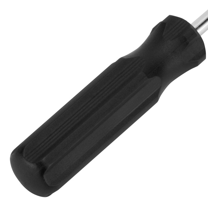 Отвертка Sparta 13213, PH2 х 100 мм, из углеродистой стали, с черной пластиковой рукояткой, рассчитана на бытовые работы. Позволяет выполнять работы с крепежом, имеющим крестообразный шлиц Phillips. Отвертка пригодится мастерам при проведении небольшого ремонта дома или в гараже. Стержень длиной 100 мм подходит для монтажа/демонтажа крепежных элементов на поверхностях и в углублениях.ПреимуществаСтержень из углеродистой стали обладает необходимой прочностью, выдерживает работу с нагрузками.За счет никелевого покрытия стержень не подвержен коррозии.Долговечность рукоятки обеспечивает маслобензостойкий пластик, из которого она изготовлена.Отверткой комфортно работать благодаря рельефным ребрам на рукоятке.