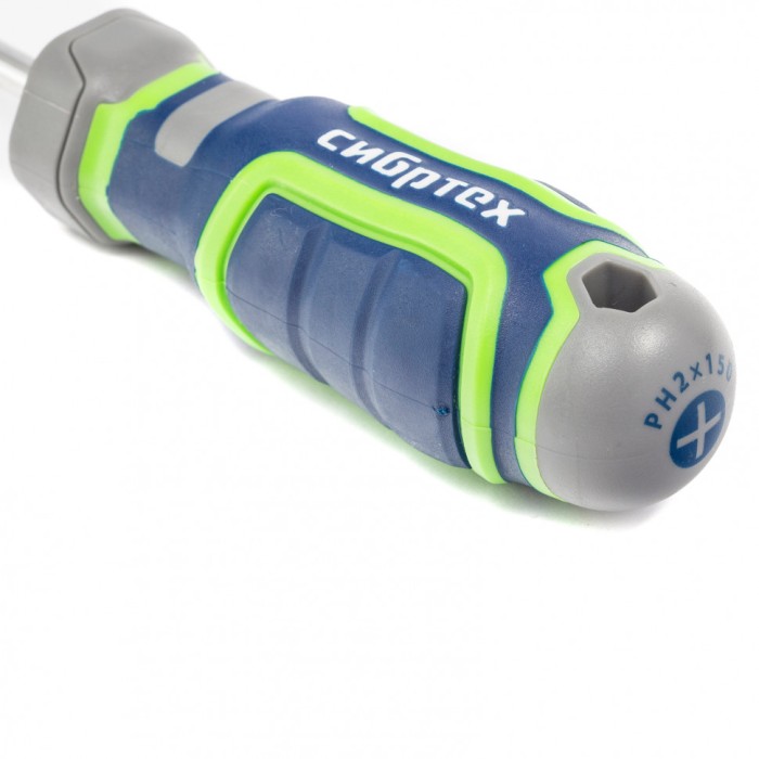 Отвертка Сибртех 12277, PH2 х 150 мм, из стали CrV, с 4-х компонентной рукояткой, имеет крестовой шлиц Philips, поэтому подходит для монтажа и извлечения крепежа соответствующего типа. Она рассчитана как на бытовые работы, так и на профессиональное применение: сборку мебели, монтаж различных конструкций и т.д. Стержень длиной 150 мм позволяет работать в углублениях и на поверхностях.ПреимуществаОтвертка обладает высоким ресурсом и прочностью, т.к. стержень изготовлен из износостойкой хромованадиевой стали, шлиц дополнительно закален до твердости 50-55 HRC.За счет намагниченного жала отвертки крепеж не нужно удерживать рукой.Рабочая часть отвертки фосфатирована, что обеспечивает лучшее сцепление с головкой крепежа.Благодаря обозначению типа шлица и длины стержня на затыльнике рукояти отвертку легко найти среди других инструментов.Четырехкомпонентная рукоятка имеет сложную рельефную форму, за счет чего она надежно лежит в руке, не проскальзывает и снижает нагрузку на запястье.