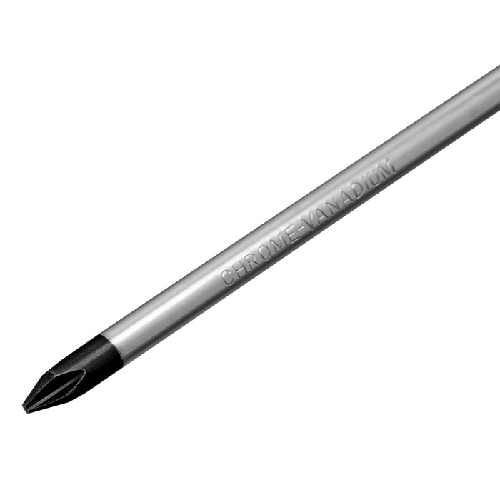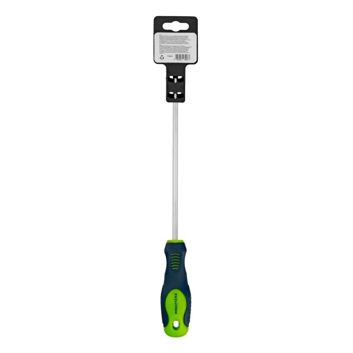 Отвертка Сибртех 11849 типоразмера PH2 х 200 мм, из стали CrV, с двухкомпонентной рукояткой и крестовым шлицем, позволяет проводить монтаж/демонтаж крепежных элементов типа Phillips. Подходит для работы с крепежом, расположенным в значительных углублениях. Полупрофессиональная отвертка поможет отремонтировать бытовую технику, повесить полки, собрать мебель и выполнить другие работы. ПреимуществаПрочность и долговечность — стержень изготовлен из хромованадиевой стали и закален до твердости 50-54 HRC.Удобная эксплуатация — фосфатированная рабочая часть обеспечивает улучшенное сцепление с головкой крепежа.Быстрый поиск нужной отвертки — на рукоятке имеется обозначение типа шлица и длины стержня.Комфортная работа без ощущения усталости — двухкомпонентная рукоятка с ромбовидными насечками и подпальцевыми выемками не выскальзывает из ладони.