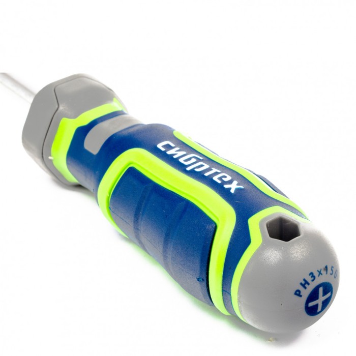 Отвертка Сибртех 12279, PH3 х 150 мм, из стали CrV, с 4-х компонентной рукояткой, имеет крестовой шлиц Philips, поэтому подходит для монтажа и извлечения крепежа соответствующего типа. Она рассчитана как на бытовые работы, так и на профессиональное применение: сборку мебели, монтаж различных конструкций и т.д. Стержень длиной 150 мм позволяет работать в углублениях и на поверхностях.ПреимуществаОтвертка обладает высоким ресурсом и прочностью, т.к. стержень изготовлен из износостойкой хромованадиевой стали, шлиц дополнительно закален до твердости 50-55 HRC.За счет намагниченного жала отвертки крепеж не нужно удерживать рукой.Рабочая часть отвертки фосфатирована, что обеспечивает лучшее сцепление с головкой крепежа.Благодаря обозначению типа шлица и длины стержня на затыльнике рукояти отвертку легко найти среди других инструментов.Четырехкомпонентная рукоятка имеет сложную рельефную форму, за счет чего она надежно лежит в руке, не проскальзывает и снижает нагрузку на запястье.