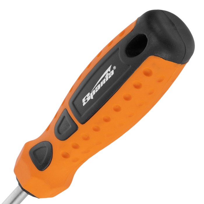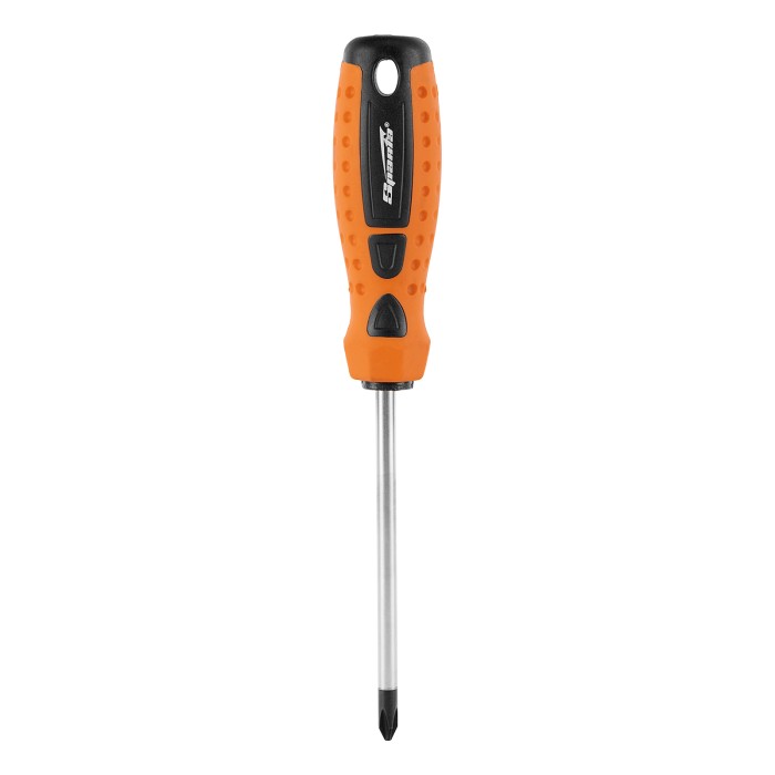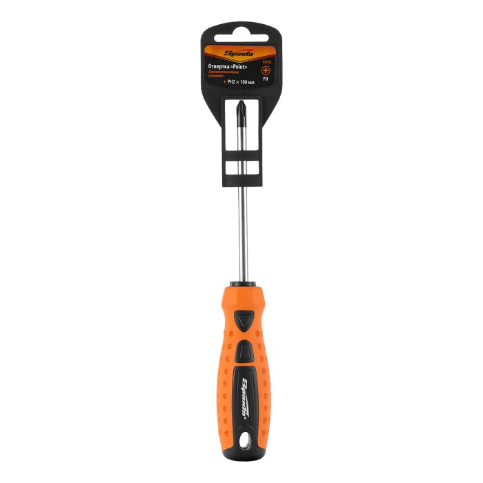 Отвертка Sparta «Point» 11778 из стали CrV, с 2-х компонентной рукояткой, подходит для монтажа/демонтажа крестового крепежа PH2. Она поможет мастерам провести мелкие бытовые работы в доме или автомастерской. Отвертка оснащена стержнем длиной 100 мм для работы на поверхностях и в углублениях.ПреимуществаИзносостойкость — стержень выполнен из углеродистой стали.Улучшенное сцепление с крепежом — рабочая часть фосфатирована.Удобство работы — на рукоятке имеется маркировка с типом шлица и длины стержня отвертки.Двухкомпонентная эргономичная рукоятка — увеличенная передача крутящего момента позволяет добиться снижения нагрузки на запястье.