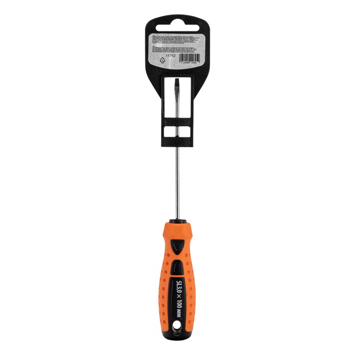 Отвертка Sparta «Point» 11762 из стали CrV, с 2-х компонентной рукояткой, рассчитана на бытовое применение для работ с крепежом типоразмера SL3,0. Она пригодится мастерам при осуществлении мелких ремонтных работ. Стержень длиной 100 мм позволяет закручивать и извлекать крепеж как с поверхностей, так и из углублений.ПреимуществаИзносостойкость и долговечность — стержень выполнен из углеродистой стали.Улучшенное сцепление с крепежом — рабочая часть фосфатирована.Удобство работы — на рукоятке имеется маркировка с типом шлица и длины стержня отвертки.Двухкомпонентная эргономичная рукоятка — увеличенная передача крутящего момента позволяет добиться снижения нагрузки на запястье.
