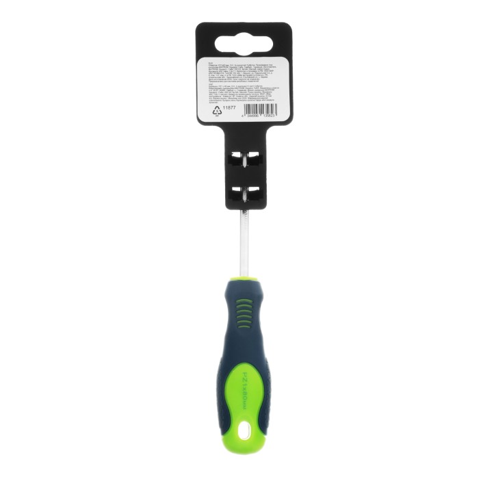 Отвертка Сибртех 11877, PZ1 х 80 мм, из стали CrV, с 2-х компонентной рукояткой, оснащена крестовым шлицем с 4 дополнительными насечками для лучшего сцепления с крепежом. Она подходит для монтажа/демонтажа крепежных элементов типа Pozidriv. Отвертка полупрофессионального класса поможет при сборке мебели, установке полок и т.д. Стержнем длиной 80 мм удобно работать на поверхностях и в углублениях.ПреимуществаВысокое качество исполнения — стержень выполнен из прочной хромованадиевой стали и закален до твердости 50-54 HRC.Фосфатированный шлиц — стержень надежно фиксируется в головке крепежа и не соскальзывает.Специальная маркировка — информация о типе шлица и длины стержня на рукоятке помогает легко найти отвертку в зоне хранения.Комфортная работа — двухкомпонентная рукоятка имеет противоскользящие ромбовидные насечки и подпальцевые выемки.