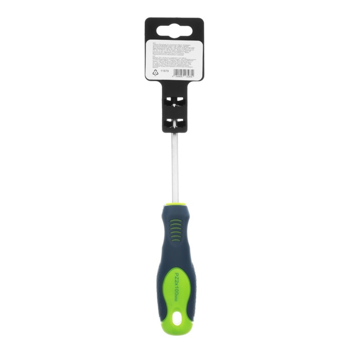 Отвертка Сибртех 11879, PZ2 х 100 мм, из стали CrV, с 2-х компонентной рукояткой, оснащена крестовым шлицем с 4 дополнительными насечками для лучшего сцепления с крепежом. Она подходит для монтажа/демонтажа крепежных эле...