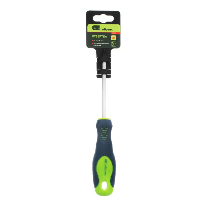 Отвертка, PZ2 х 100 мм, CrV, двухкомпонентная рукоятка Сибртех