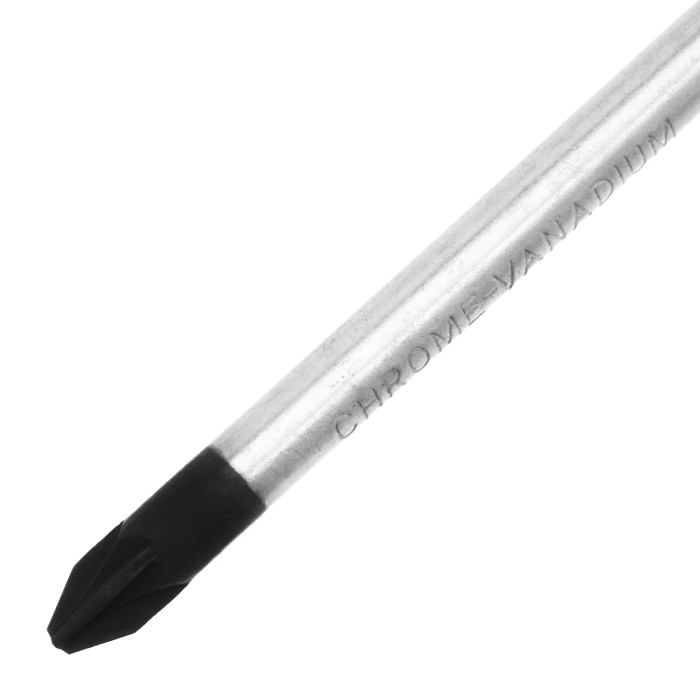 Отвертка Сибртех 11879, PZ2 х 100 мм, из стали CrV, с 2-х компонентной рукояткой, оснащена крестовым шлицем с 4 дополнительными насечками для лучшего сцепления с крепежом. Она подходит для монтажа/демонтажа крепежных элементов типа Pozidriv. Отвертка полупрофессионального класса поможет при сборке мебели, установке полок и т.д. Стержнем длиной 100 мм удобно работать на поверхностях и в углублениях.ПреимуществаВысокое качество исполнения — стержень выполнен из прочной хромованадиевой стали и закален до твердости 50-54 HRC.Фосфатированный шлиц — стержень надежно фиксируется в головке крепежа и не соскальзывает.Специальная маркировка — информация о типе шлица и длины стержня на рукоятке помогает легко найти отвертку в зоне хранения.Комфортная работа — двухкомпонентная рукоятка имеет противоскользящие ромбовидные насечки и подпальцевые выемки.
