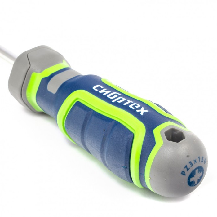 Отвертка Сибртех 12283, PZ3 х 150 мм, из стали CrV, с 4-х компонентной рукояткой, оснащена крестообразным шлицем с 4 дополнительными насечками, который обеспечивает точность работы и не проскальзывает в головке крепежа. ...