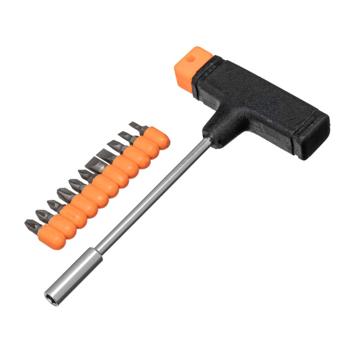 Отвертка Т-образная - 1 штБиты 25 мм: РН1, РН2, РН3, PZ1, PZ2, PZ3, SL3, SL4, SL5, SL6, SL7 - 11 шт