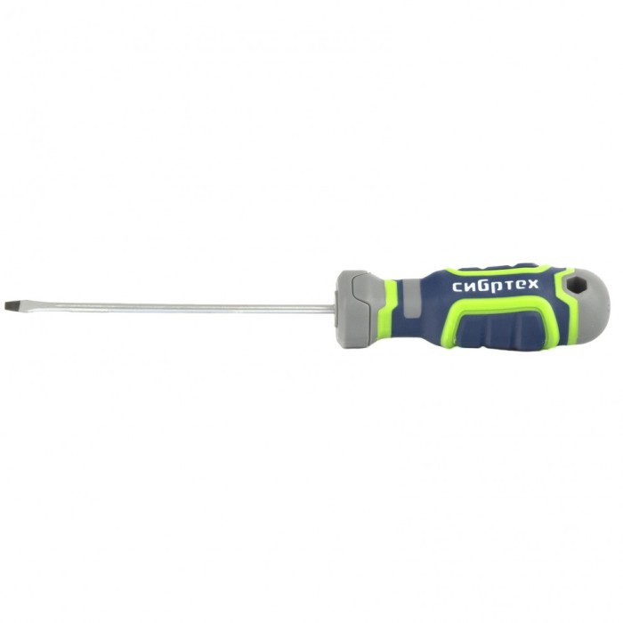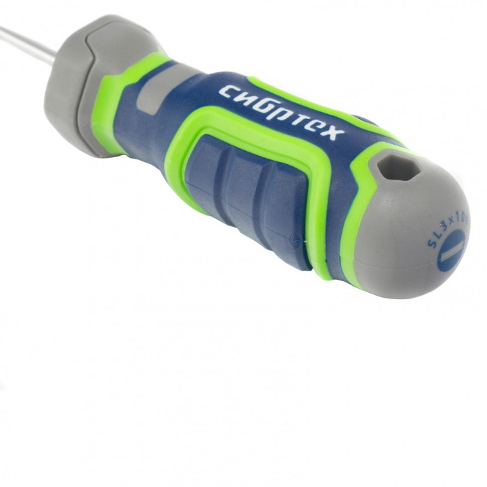 Отвертка Сибртех 12261, SL3,0 х 100 мм, из стали CrV, с 4-х компонентной рукояткой, используется при проведении работ, требующих приложения серьезного крутящего момента. Отвертка со шлицем Slotted подходит для закручивания и извлечения крепежа аналогичного типа. Стержнем длиной 100 мм удобно работать в углублениях и на поверхностях.ПреимуществаОтвертка отличается высоким качеством исполнения — стержень изготовлен из хромованадиевой стали, а шлиц закален до твердости 50-55 HRC.Намагниченное жало повышает удобство работы, т.к. избавляет от необходимости придерживать крепеж рукой.Шлиц фосфатирован для лучшего сцепления с головкой крепежа.Маркировка типа шлица и длины стержня на затыльнике рукояти позволяет легко найти отвертку в зоне хранения.Четырехкомпонентная рукоятка со сложной рельефной формой обеспечивает надежное удержание отвертки, снижает усталость рук и увеличивает передачу крутящего момента.