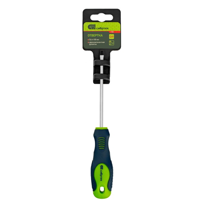 Отвертка, SL4 х 100 мм, CrV, двухкомпонентная рукоятка Сибртех