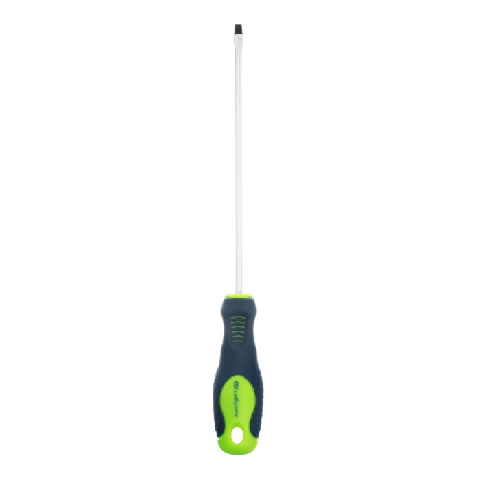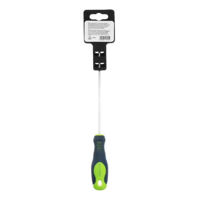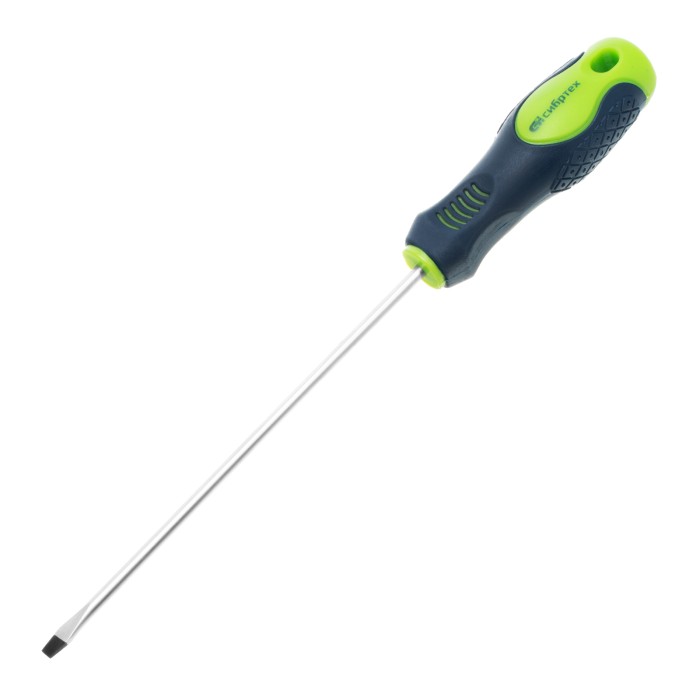 Отвертка Сибртех 11863, SL4,0 х 150 мм, из стали CrV, с 2-х компонентной рукояткой, подходит для работ, не требующих большого усилия затяжки. С ее помощью осуществляется монтаж/демонтаж крепежных элементов типа Slotted. Отвертка оснащена стержнем длиной 150 мм для работ в углублениях и на поверхностях. Инструмент пригодится для полупрофессионального применения.ПреимуществаСтержень из хромованадиевой стали твердостью 50-54 HRC характеризуется износостойкостью, что положительно сказывается на его сроке службы.Фосфатированный наконечник стержня позволяет добиться улучшенного сцепления с головкой крепежа.Отвертка имеет маркировку с типом шлица и длины стержня для удобства поиска отвертки среди других инструментов.Специальные насечки на двухкомпонентной эргономичной рукоятке предотвращают ее проскальзывание в руке.