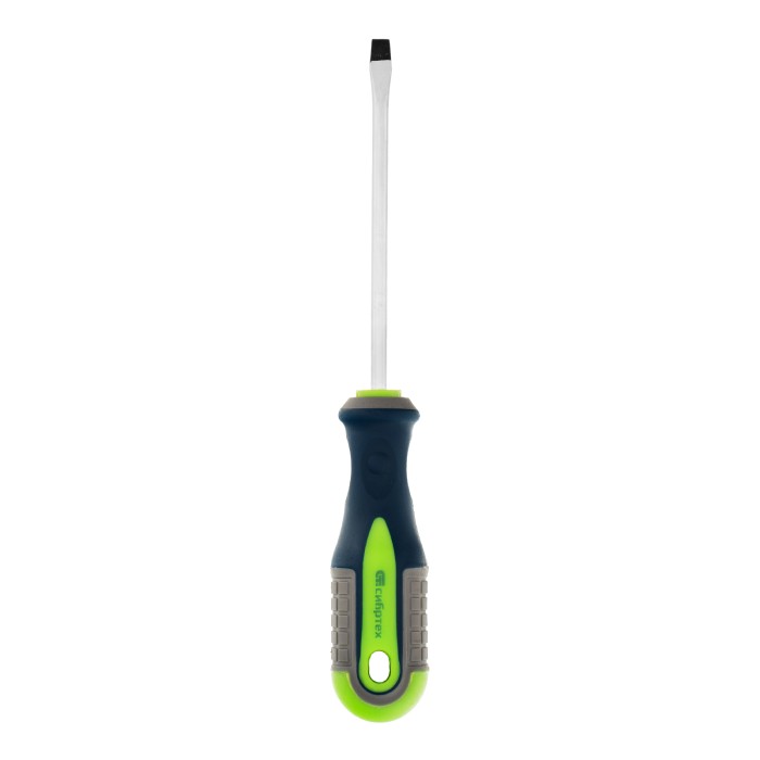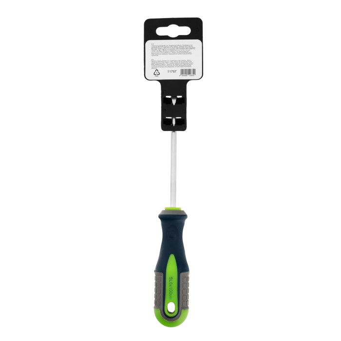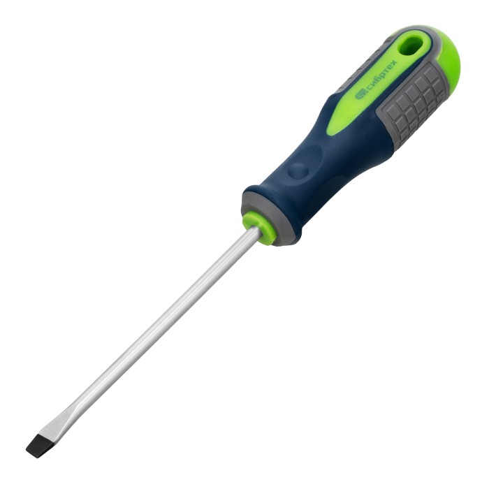Отвертка Сибртех 11797, SL5,0 х 100 мм, из стали CrV, с 3-х компонентной рукояткой, пригодится для монтажа/демонтажа резьбовых соединений типа Slotted. С ее помощью можно осуществить работы, требующие полноценной затяжки крепежа. Стержнем длиной 100 мм удобно работать на поверхностях и в углублениях.ПреимуществаВысокие прочностные характеристики — стержень выполнен из хромованадиевой стали и закален до твердости 50-54 HRC.Фосфатированный наконечник — жало не соскальзывает с головки крепежа.Специальная маркировка — на рукоятку нанесено обозначение типа шлица и длины стержня для быстрого поиска нужной отвертки.Удобная рукоятка — квадратные насечки с подпальцевыми выемками снижают усталость рук при длительной работе.