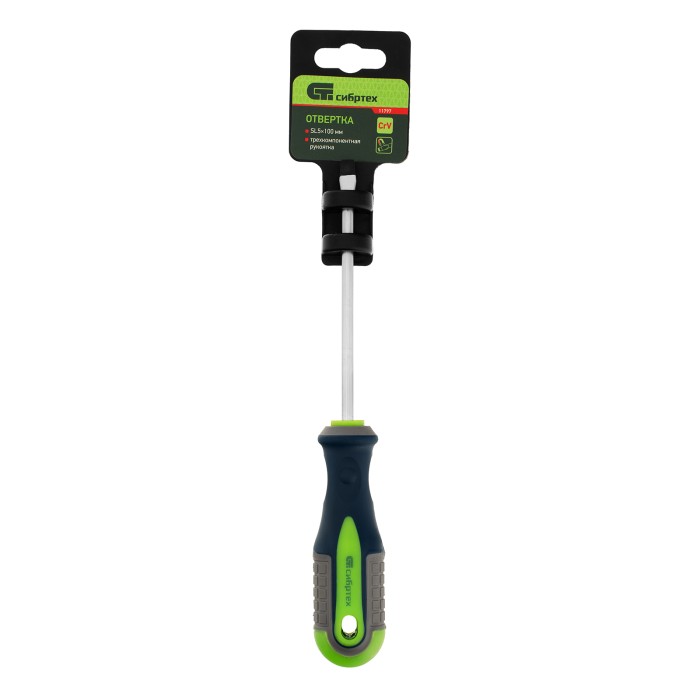 Отвертка, SL5 х 100 мм, CrV, трехкомпонентная рукоятка Сибртех