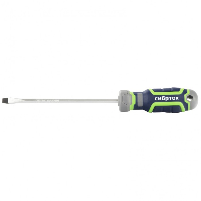 Отвертка Сибртех 12268, SL6,0 х 150 мм, из стали CrV, с 4-х компонентной рукояткой, используется при проведении работ, требующих приложения серьезного крутящего момента. Отвертка со шлицем Slotted подходит для закручивания и извлечения крепежа аналогичного типа. Стержнем длиной 150 мм удобно работать в углублениях и на поверхностях.ПреимуществаОтвертка отличается высоким качеством исполнения — стержень изготовлен из хромованадиевой стали, а шлиц закален до твердости 50-55 HRC.Намагниченное жало повышает удобство работы, т.к. избавляет от необходимости придерживать крепеж рукой.Шлиц фосфатирован для лучшего сцепления с головкой крепежа.Маркировка типа шлица и длины стержня на затыльнике рукояти позволяет легко найти отвертку в зоне хранения.Четырехкомпонентная рукоятка со сложной рельефной формой обеспечивает надежное удержание отвертки, снижает усталость рук и увеличивает передачу крутящего момента.