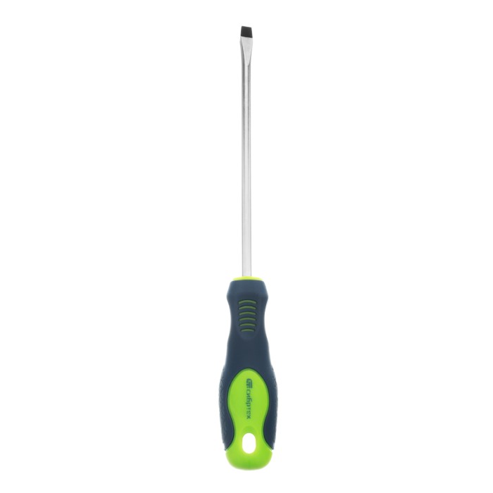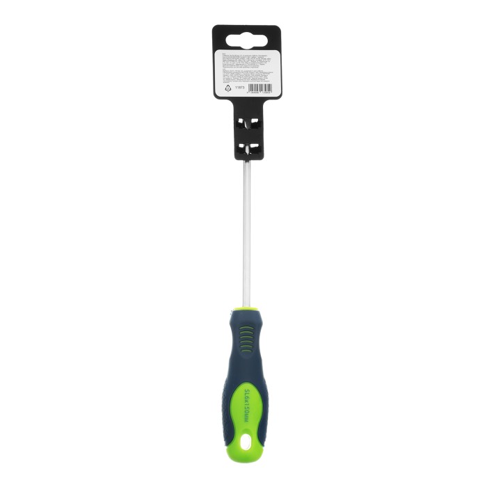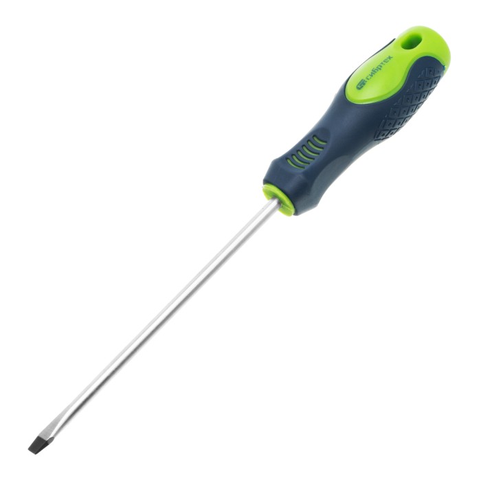 Отвертка Сибртех 11873, SL6,0 х 150 мм, из стали CrV, с 2-х компонентной рукояткой, подходит для работ, не требующих большого усилия затяжки. С ее помощью осуществляется монтаж/демонтаж крепежных элементов типа Slotted. Отвертка оснащена стержнем длиной 150 мм для работ в углублениях и на поверхностях. Инструмент пригодится для полупрофессионального применения.ПреимуществаСтержень из хромованадиевой стали твердостью 50-54 HRC характеризуется износостойкостью, что положительно сказывается на его сроке службы.Фосфатированный наконечник стержня позволяет добиться улучшенного сцепления с головкой крепежа.Отвертка имеет маркировку с типом шлица и длины стержня для удобства поиска отвертки среди других инструментов.Специальные насечки на двухкомпонентной эргономичной рукоятке предотвращают ее проскальзывание в руке.