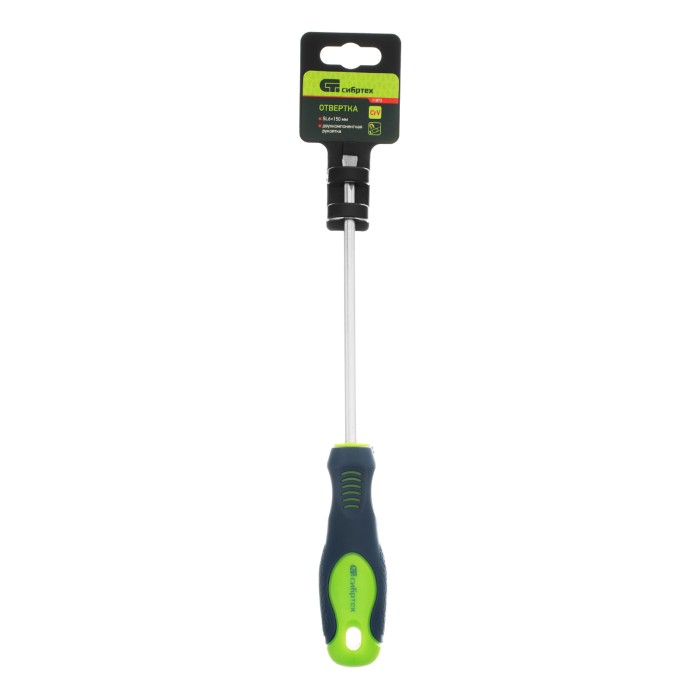 Отвертка, SL6 х 150 мм, CrV, двухкомпонентная рукоятка Сибртех