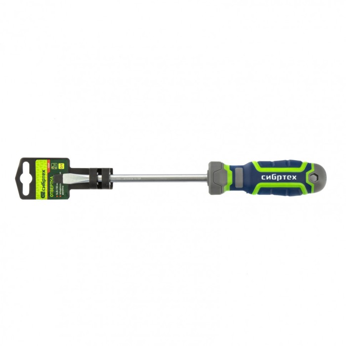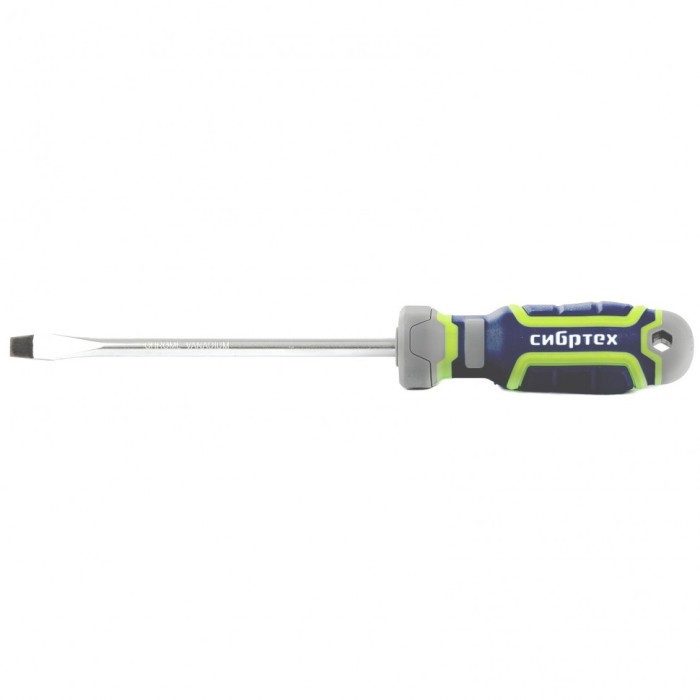 Отвертка Сибртех 12269, SL8,0 х 150 мм, из стали CrV, с 4-х компонентной рукояткой, используется при проведении работ, требующих приложения серьезного крутящего момента. Отвертка со шлицем Slotted подходит для закручивания и извлечения крепежа аналогичного типа. Стержнем длиной 150 мм удобно работать в углублениях и на поверхностях.ПреимуществаОтвертка отличается высоким качеством исполнения — стержень изготовлен из хромованадиевой стали, а шлиц закален до твердости 50-55 HRC.Намагниченное жало повышает удобство работы, т.к. избавляет от необходимости придерживать крепеж рукой.Шлиц фосфатирован для лучшего сцепления с головкой крепежа.Маркировка типа шлица и длины стержня на затыльнике рукояти позволяет легко найти отвертку в зоне хранения.Четырехкомпонентная рукоятка со сложной рельефной формой обеспечивает надежное удержание отвертки, снижает усталость рук и увеличивает передачу крутящего момента.