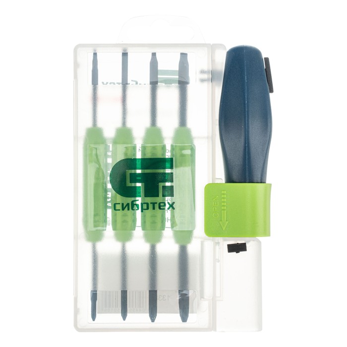 Отвертка со сменными двухсторонними насадками, 8 в 1, пластиковый кейс, CrV Сибртех