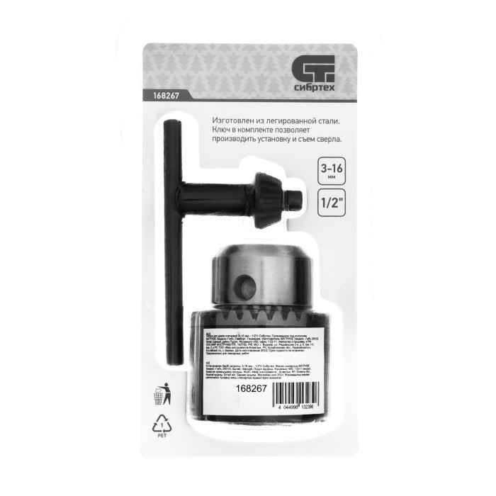 Ключевой патрон для дрели Сибртех 168267 с посадочным диаметром 1/2 дюйма обеспечивает надежную фиксацию сверл с хвостовиками 3-16 мм для осуществления сверлильных работ. Будет полезен в быту и для решения профессиональных задач.ПреимуществаТвердость кулачков патрона 54-56 HRC позволяет использовать его в ударном режиме и с повышенными механическими нагрузками.Оснастка в патроне фиксируется с помощью ключа, поэтому она надежно закреплена.Насечки на патроне предотвращают его проскальзывание в руках.Благодаря маркировке на корпусе патрона можно в любой момент посмотреть его характеристики.Патрон поставляется в комплекте с ключом и сразу готов к работе.