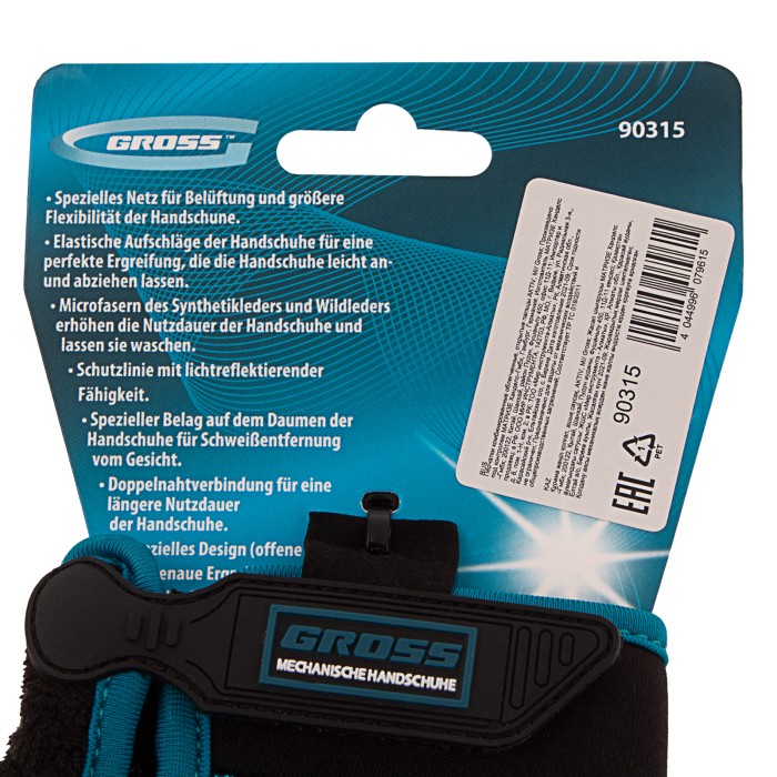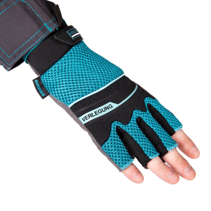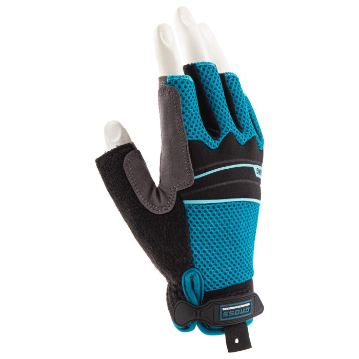 Комбинированные облегченные перчатки Gross AKTIV 90315 размера M, с открытыми пальцами, — часть экипировки для проведения ремонтных, строительно-монтажных работ или занятий активными видами спорта. Пенный протектор защищ...
