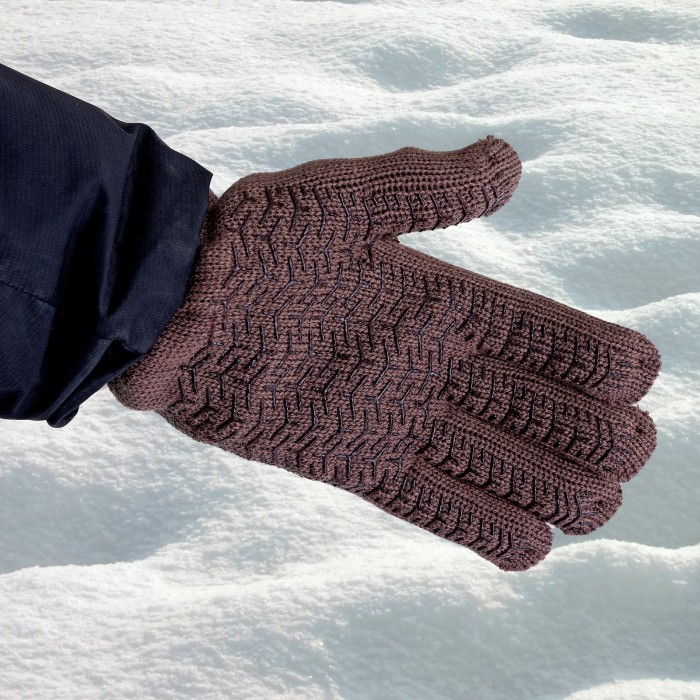 Двойные трикотажные полушерстяные перчатки Сибртех 68634 с ПВХ-покрытием защищают руки работника от механических повреждений и общепроизводственных загрязнений. Внешняя перчатка изготовлена из полиакрилонитрила (ПАН). В состав пряжи внутренней перчатки входит ПАН — 42%, верблюжья шерсть — 15%, овечья шерсть — 43%. Покрытие из ПВХ обеспечивает надежное сцепление с поверхностью и удобный хват во время работы с различными предметами. Перчатки используются во время выполнения тяжелых строительных, механосборочных, такелажных и монтажных работ в неотапливаемых помещениях и в холодное время года. ПреимуществаКомфортное использование — благодаря высокой эластичности перчатки удобно надевать и снимать.Удобная посадка — двойные манжеты плотно облегают запястья.Прочность и долговечность — материал перчаток устойчив к разрыву и истиранию.Надежная защита от холода — внутренняя перчатка эффективно сохраняет тепло.