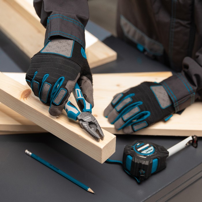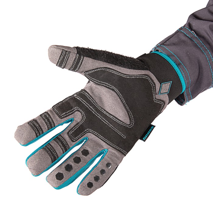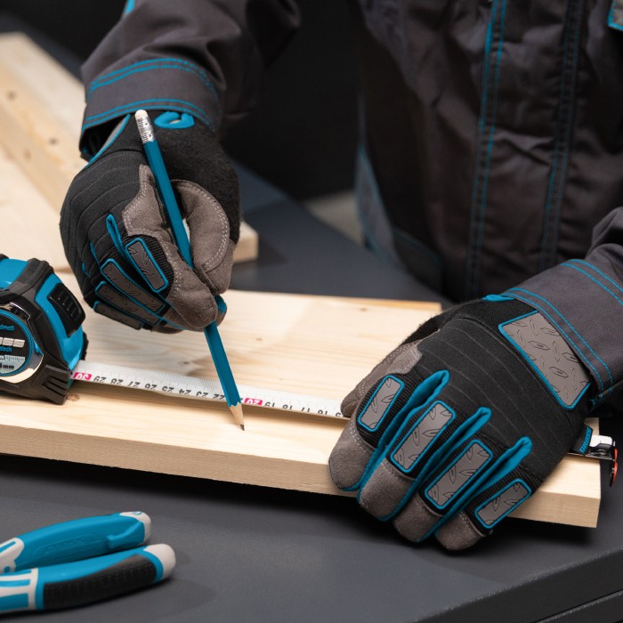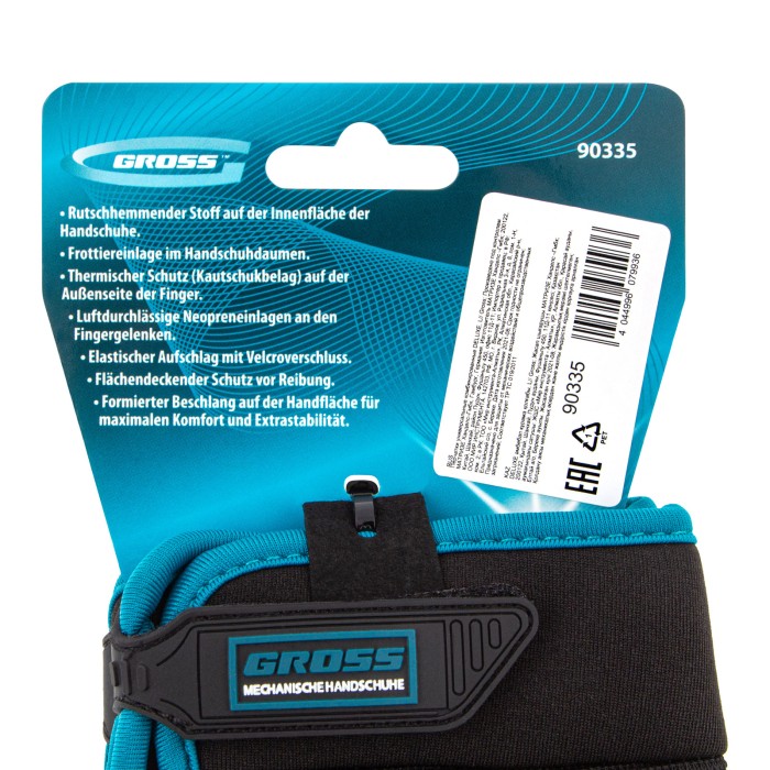 Универсальные комбинированные перчатки Gross DELUXE 90335 размера XXL защищают руки от механических воздействий и образования мозолей. Анатомически скроенные перчатки плотно облегают кисти рук и не сковывают движения. Силиконовые накладки на внутренней стороне пальцев препятствуют выскальзыванию инструментов и снаряжения из рук. Перчатки пригодятся при работе с ручным и электрическим инструментом, занятиях мото- и велоспортом, а также при участии в спортивных высокотравматичных играх.ПреимуществаИзносостойкость — благодаря прокладкам на пальцах и формованной накладке на ладонной части перчатки защищены от протирания.Возможность использования в холодный период — на внешней стороне пальцев находится резиновое покрытие, обеспечивающее термическую защиту.Надежная фиксация — манжеты снабжены лентами-застежками velcro, благодаря которым изделия не сползают с кистей рук.Защита от натирания — при изготовлении перчаток использованы специальные швы Ergonomic Cut, которые не повреждают кожу.Комфорт во время работы — в области суставов пальцев имеются воздухопроницаемые неопреновые прокладки, поэтому руки в перчатках не потеют.Подтвержденное качество — изделия прошли испытания, доказавшие их стойкость к разрывам, проколам, порезам и истиранию.